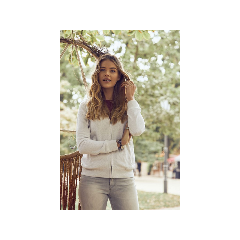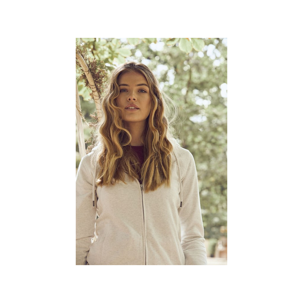 Découvrez ce sweat zippé à capuche femme en Coton Organique et Polyester Recyclé. Customisez le en broderie ou impression en y ajoutant votre logo, texte, photo...