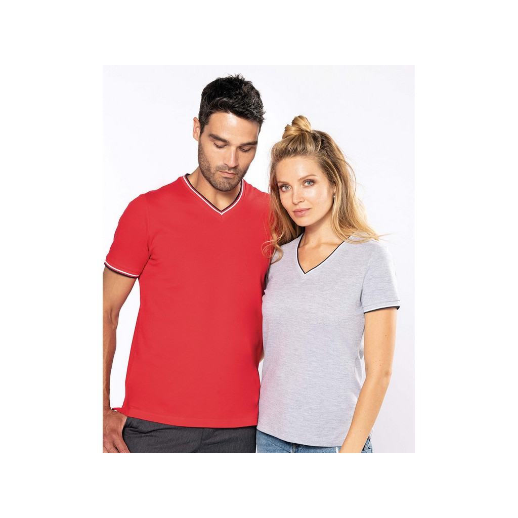 Ce tshirt col V est personnalisable à votre image. Tshirt original à imprimer. Tshirt bleu, blanc, rouge, couleurs de la France, idéal pour mettre le made in France en avant dans votre communication.