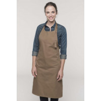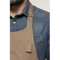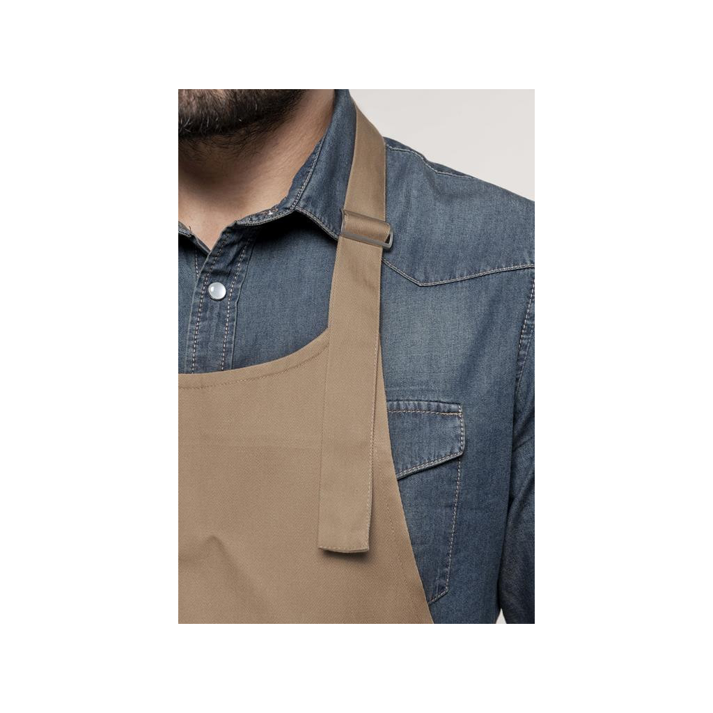 65% polyester / 35% coton (Denim, Black Denim 65 % coton / 35 % polyester). Lavage domestique 60°C. Boucle de réglage en métal au niveau du cou pour ajuster la longueur du tablier. Sans poche. Dimensions : H 90 cm - L 76 cm. Couleurs Denim : ce produit a subi un traitement spécial et présente un aspect volontairement vieilli. Ce procédé de fabrication implique des variations de couleurs d'un produit à l'autre et rend chaque pièce unique.