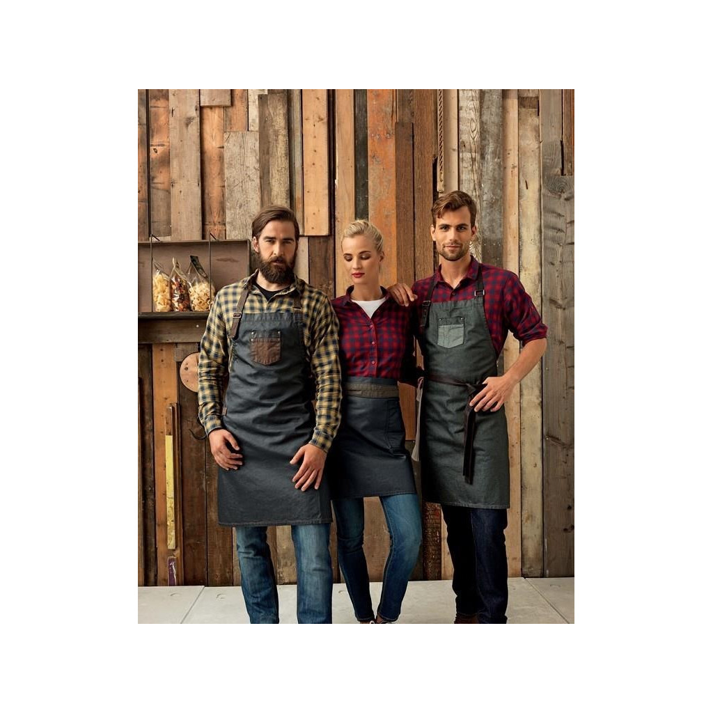 Tablier personnalisable en 100% coton denim avec une finition acrylique "effet huilé" longue durée, marque Premier.