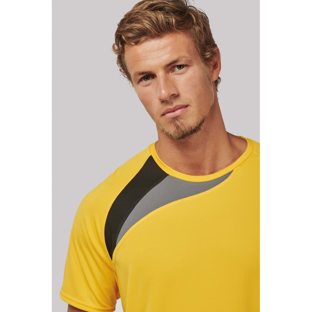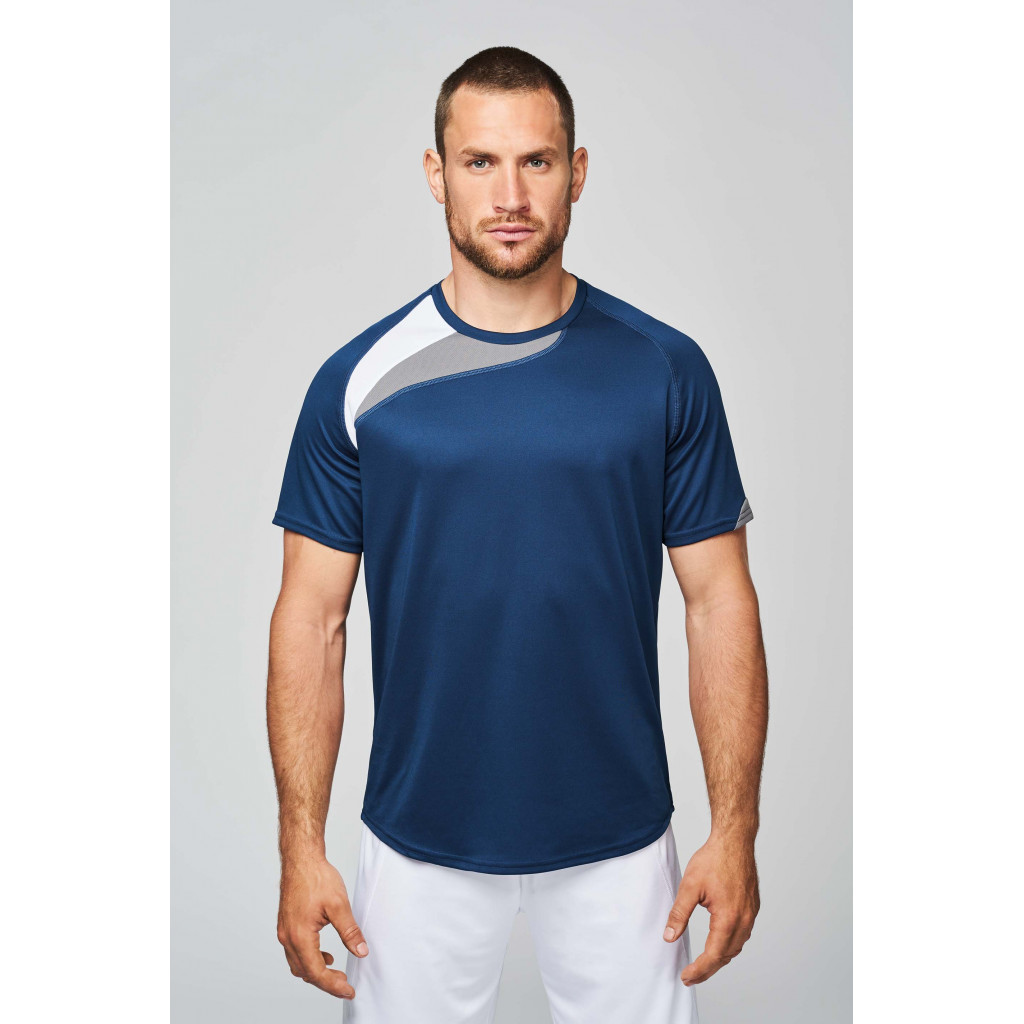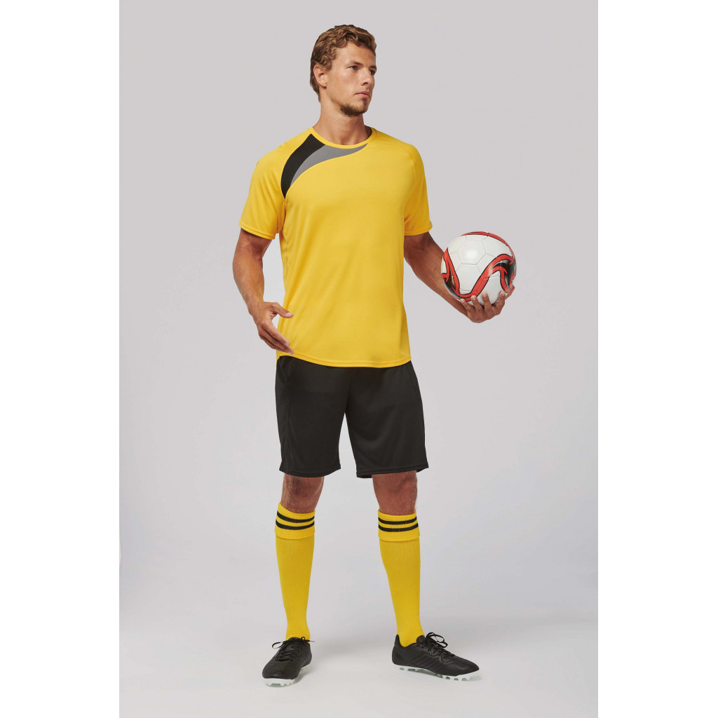 Personnalisez votre T-shirt 100% polyester selon vos goûts. Tissu à séchage rapide. Empiècements contrastés. Finition points de recouvrement ton sur ton. Finition double aiguille au bas de vêtement et manches. Idéal pour vos entraînements de football.