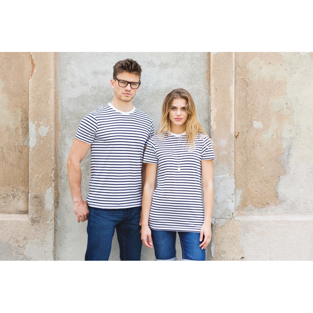 Tshirt marinière personnalisable. Ce tshirt mixte a déjà habillé une équipe en restauration, une entreprise qui propose des sorties en bateau...