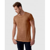 100% coton pré-rétréci Ring-Spun. T-shirt manches courtes tendance en Single Jersey teinté à froid. Col rond ras-du-cou avec bande de propreté. Manches montées. Pigmentation accentuée sur les coutures (col, bords de manche et bord inférieur). Coutures latérales vrillées avec pigmentation accentuée. Finition des manches : ourlet plié à brides d'arrêt, renforçant également l'effet de pigmentation. Coutures invisibles sur le bord inférieur.