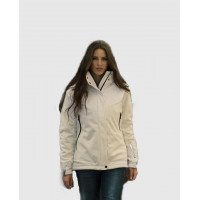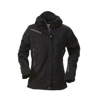 Parka softshell femme personnalisable de la marque Printer. Ce modèle est doublée avec une capuche amovible et dispose de manches ergonomiques avec scratch velcro aux bas des manches et lien de serrage a la taille.