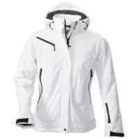 Parka softshell femme personnalisable de la marque Printer. Ce modèle est doublée avec une capuche amovible et dispose de manches ergonomiques avec scratch velcro aux bas des manches et lien de serrage a la taille.