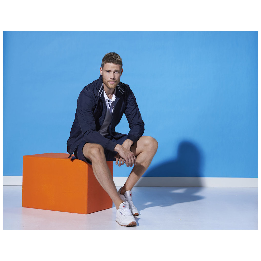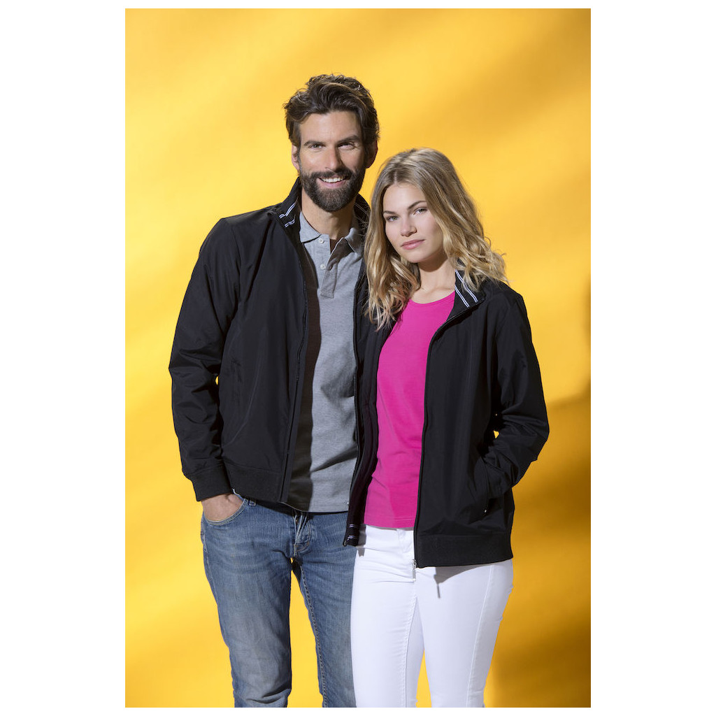 Elle se caractérise par son imperméabilité, ses 2 poches zippées sur le devant, une poche zippée intérieure, et sa bande de propreté avec liserés contrastés au niveau du col.