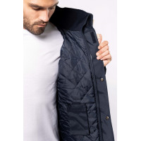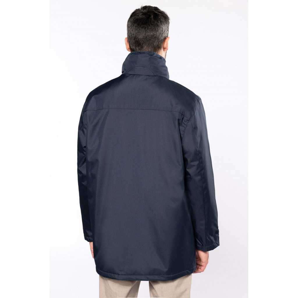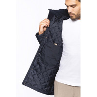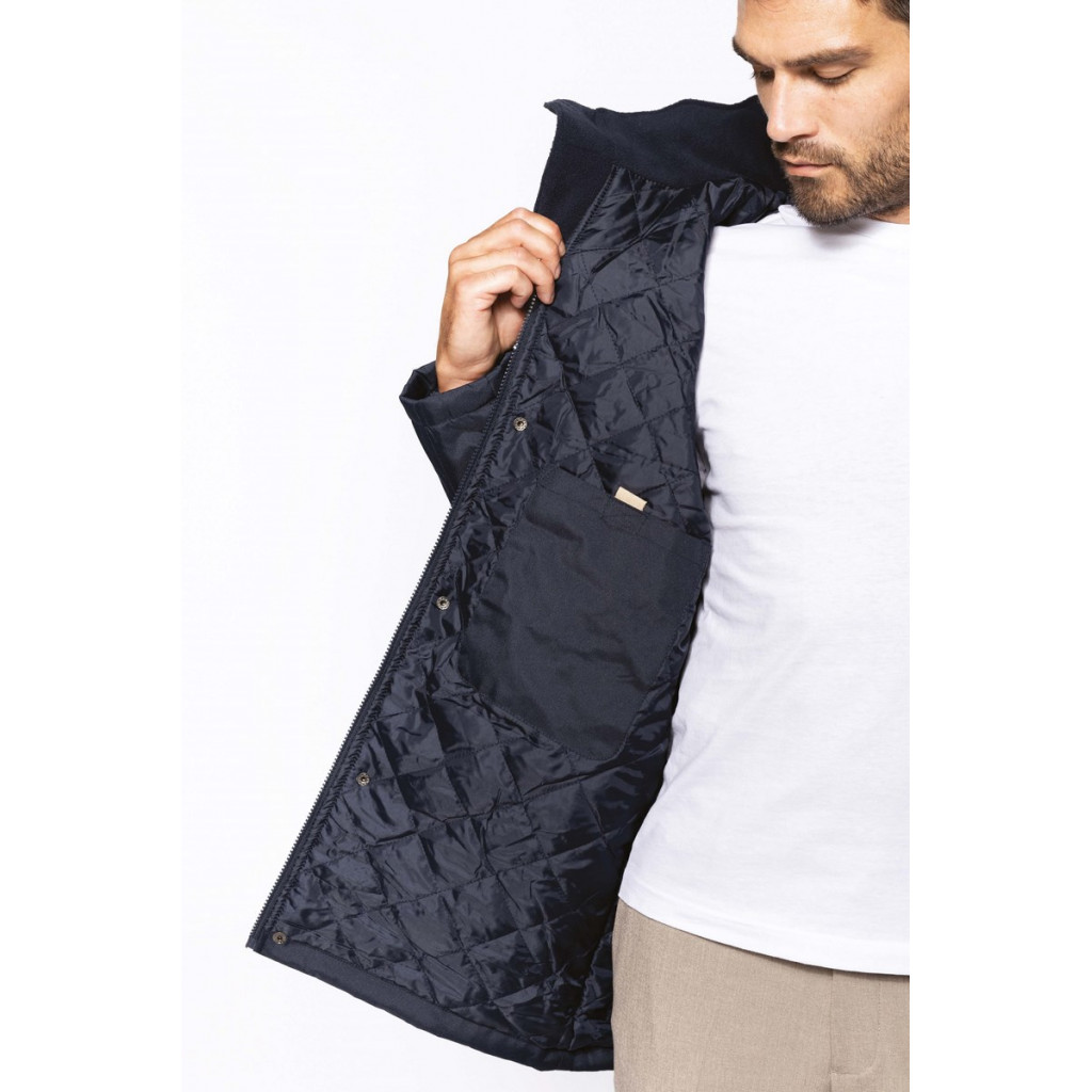 Extérieur : 100% polyester Oxford. Intérieur : polyester matelassé. Fermeture zippée avec patte auto-agrippante et pressions invisibles. 2 poches extérieures zippées. 2 poches intérieures dont 1 poche pour téléphone portable. Capuche dans le col. Col doublé polaire. Zip pour personnalisation.