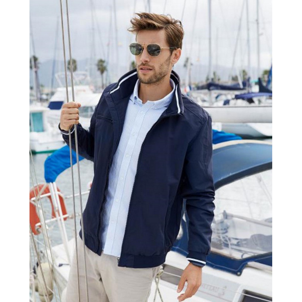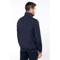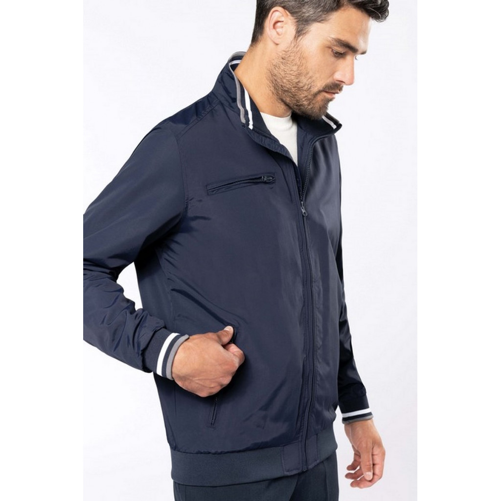 100% polyamide ottoman Taslan. Doublure filet 100% polyester. Tissu résistant et mat. 2 poches zippées devant. 1 poche zippée poitrine. 1 poche intérieure. Intérieur col en bord-côte avec rayures contrastées. Doublure filet. Bas de vêtement en bord-côte uni. Bas de manches en bord-côte avec rayures contrastées. Zip pour la personnalisation.