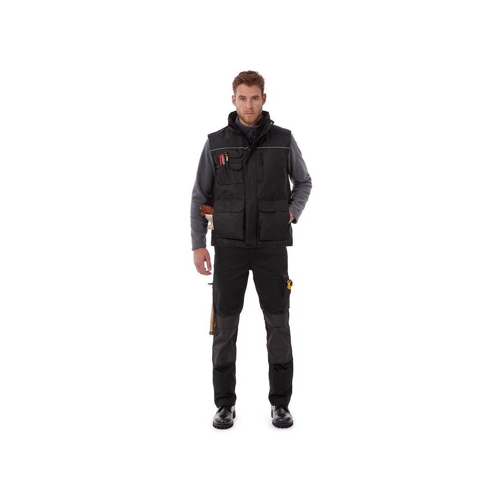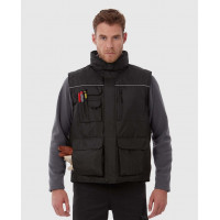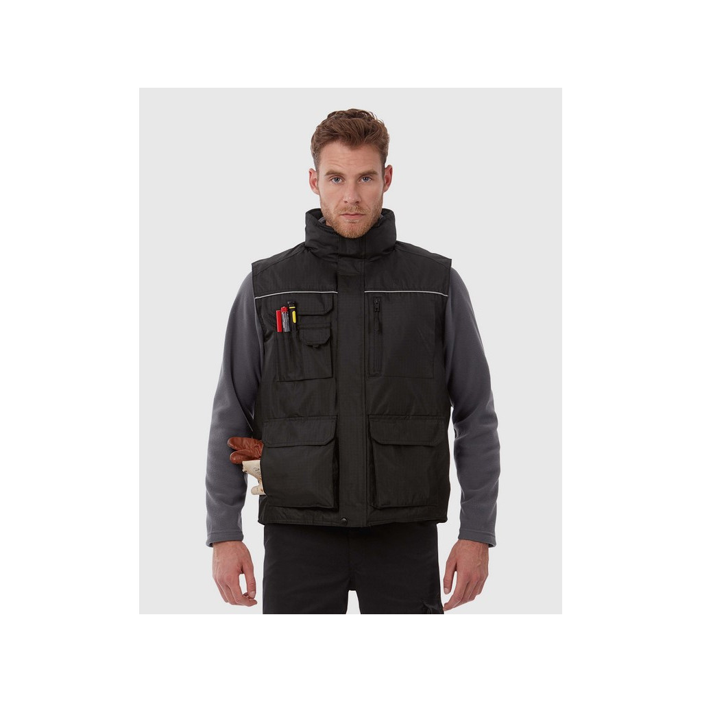 Ce bodywarmer pour Homme personnalisable est composé à 100% de polyester Ripstop. Ce modèle est résistant au vent et déperlant. L'intérieur est 100% en doublure de polyester rembourré, la doublure des poches et du col est en laine micropolaire et garderas votre corps bien au chaud au quotidien.