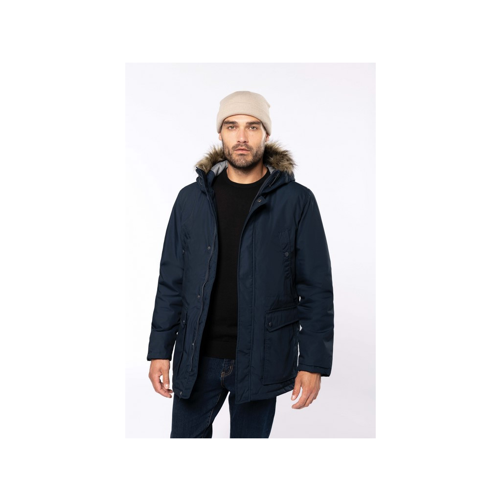 - Capuche doublée et matelassée avec fausse fourrure détachable.