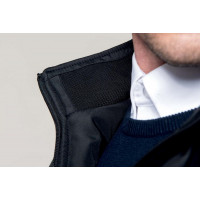 - Tissu extérieur satiné. 2 poches côté et 1 poche poitrine zippées à l'avant. 2 poches intérieures.