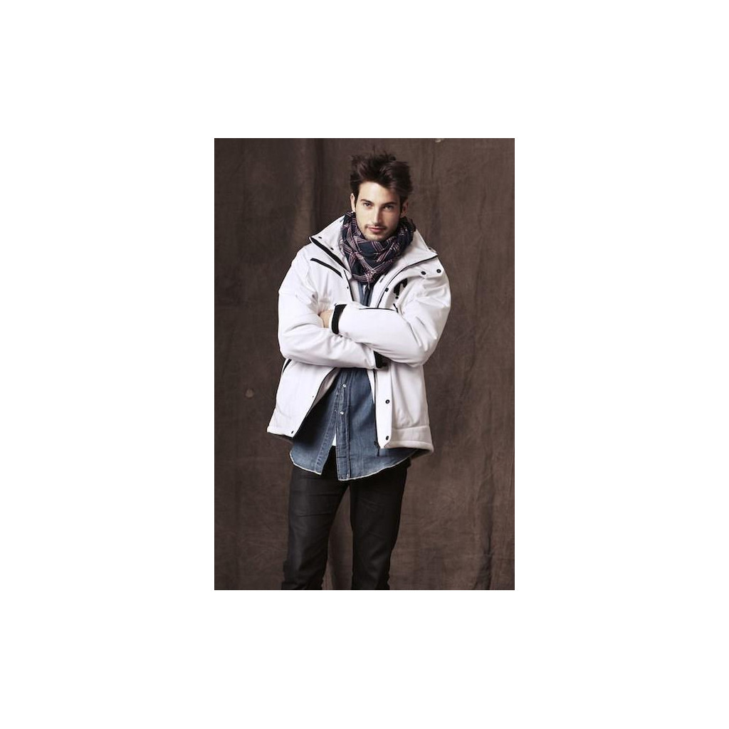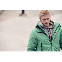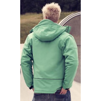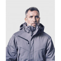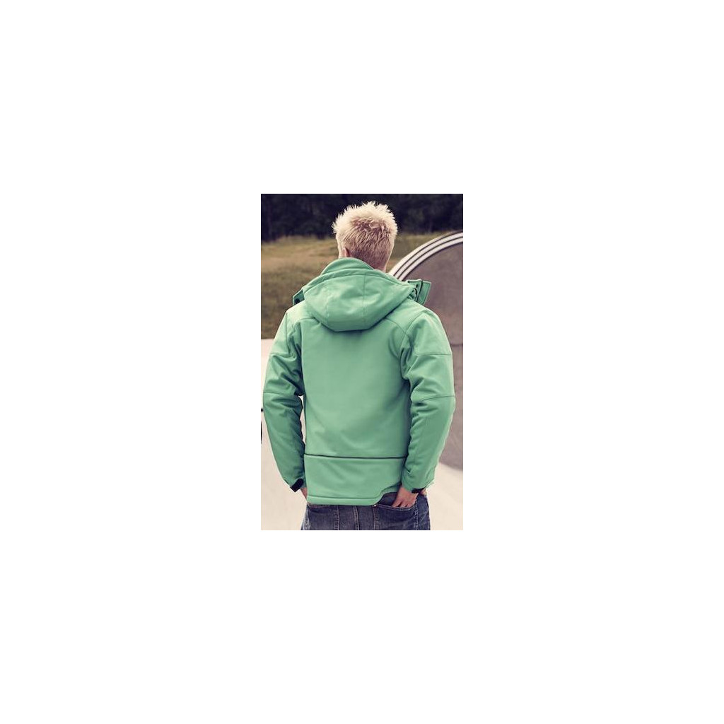 Parka softshell homme personnalisable de la marque Printer. Ce modèle est doublée avec une capuche amovible et dispose de manches ergonomiques avec scratch velcro aux bas des manches et lien de serrage a la taille.