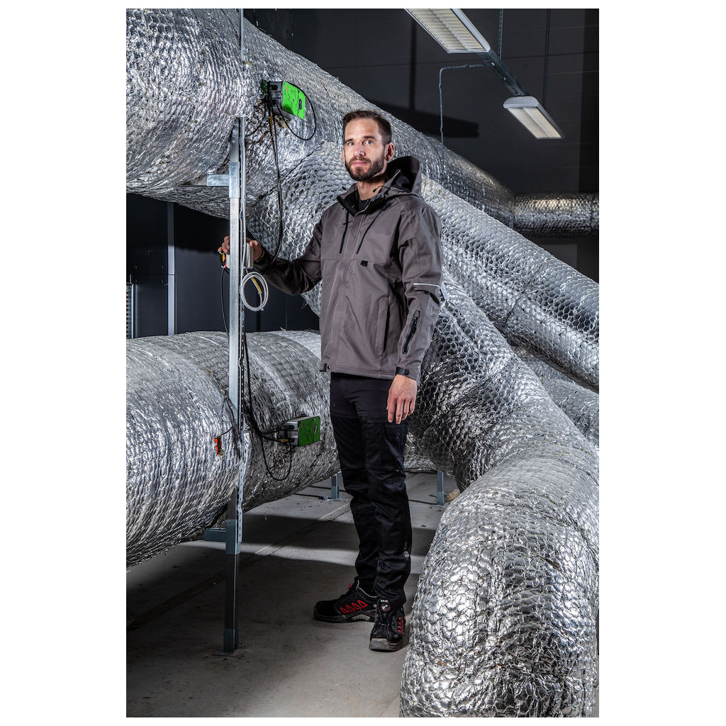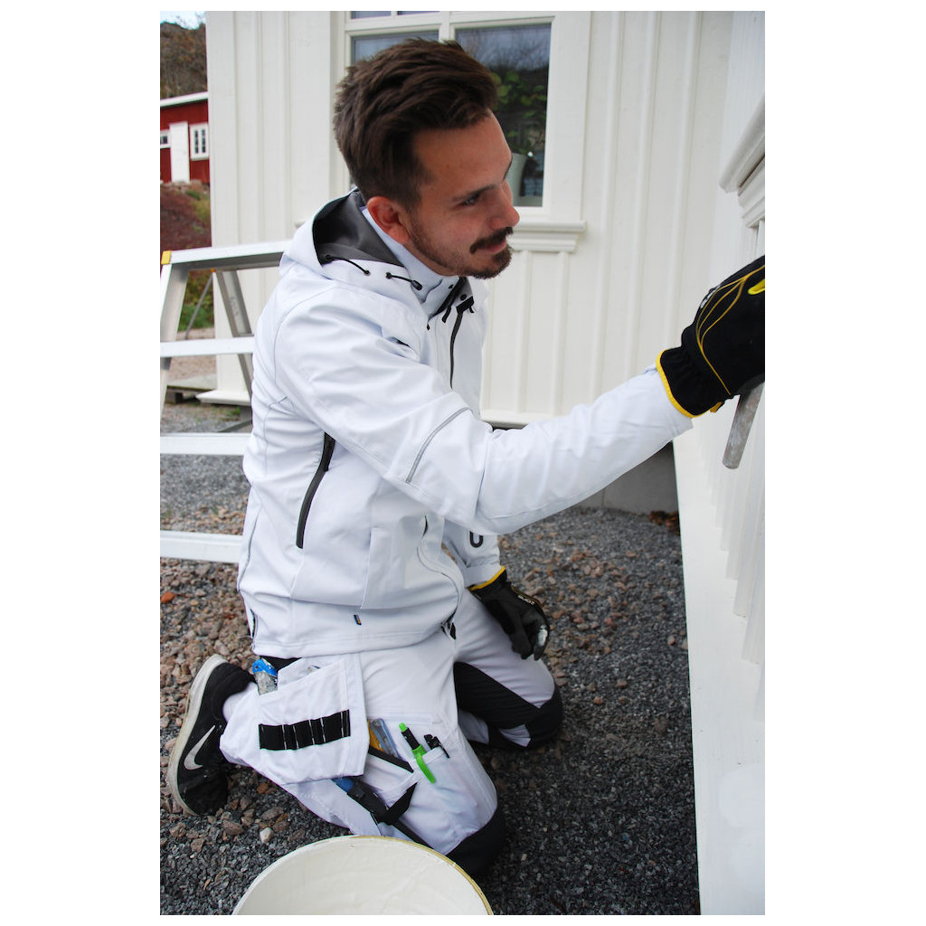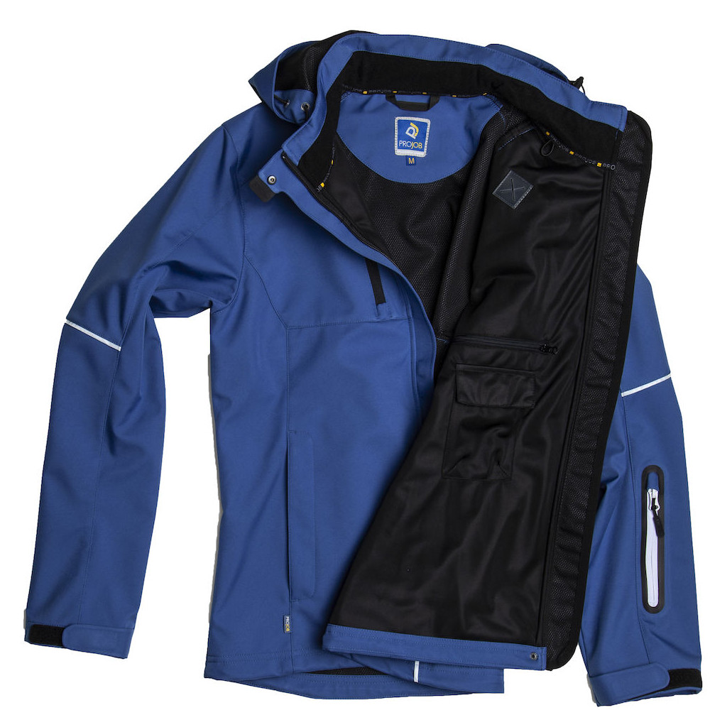 Veste softshell 3 couches déperlante et coupe vent. 260g/m2. Deux poches poitrine, poche gauche pour téléphone mobile. Attache pour badge. Deux poches latérales, poche sur le bras gauche, poche intérieure à gauche. Zip sous les aisselles pour la ventilation. Cordon de serrage à la taille. Poignets réglables. Bandes réfléchissantes sur les manches et au dos. Capuche amovible et réglable. Col doublé polaire pour un meilleur confort. WP8000/MVP8000.