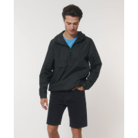 - Capuche doublée avec arrêt en plastique ajustable et cordon élastique à l’intérieur